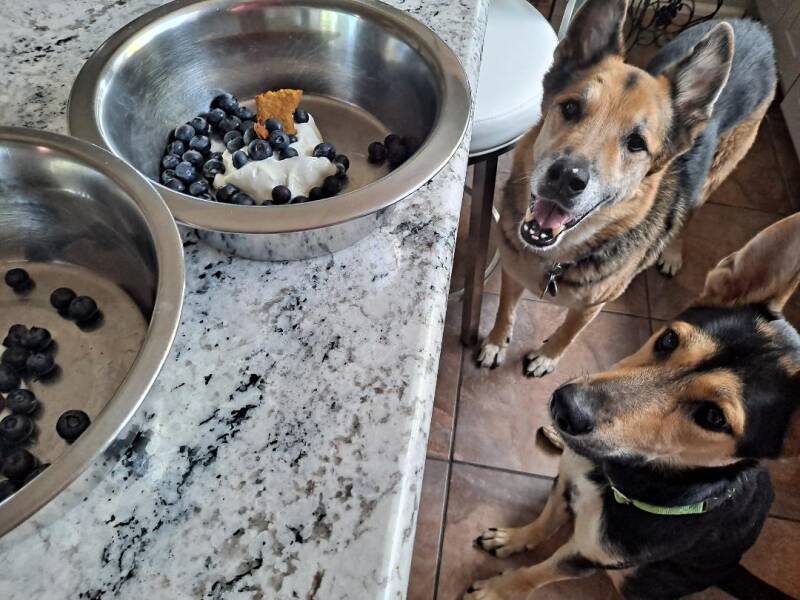 I invite you to follow my blog on Facebook at Love Your Body - Love The Planet. It features my plant-based cooking ideas, preludes to the upcoming cookbook, info on my cooking classes, progress on "Serenity Haven" (our backyard turned into organic food forest/edible landscape) conversion, and how I cook homemade, healthy meals for our 2 beautiful, rescued German Shepherds; Lobo and Mishka. (And fun stories from time to time, when I actually have a bit of time to write, about their shenanigans! ) *Note*, they are not in the kitchen with me, when I am baking orders. They are very content to lie in the doorway to the next room and just watch, and smell, and HOPE! (haha).